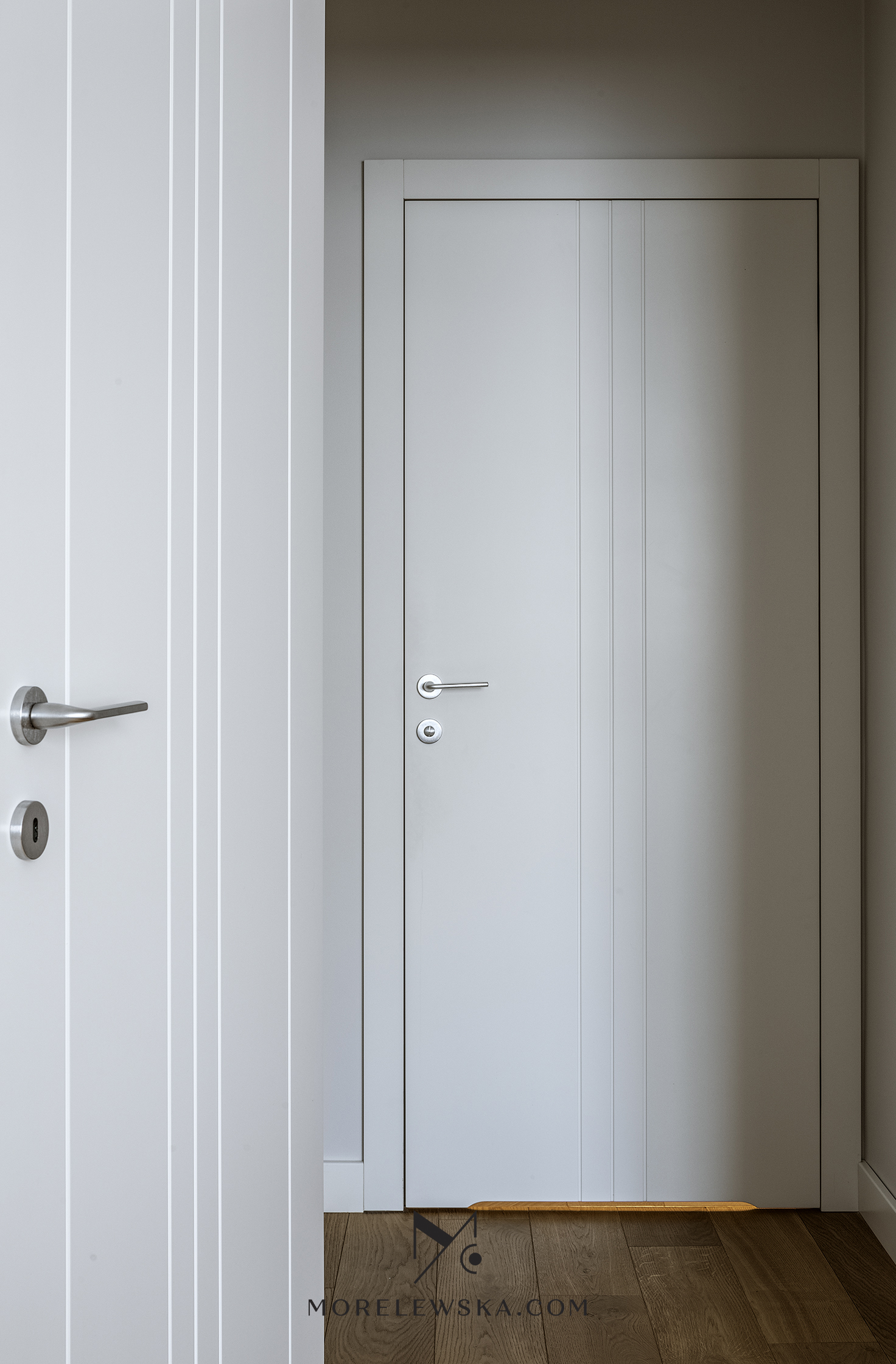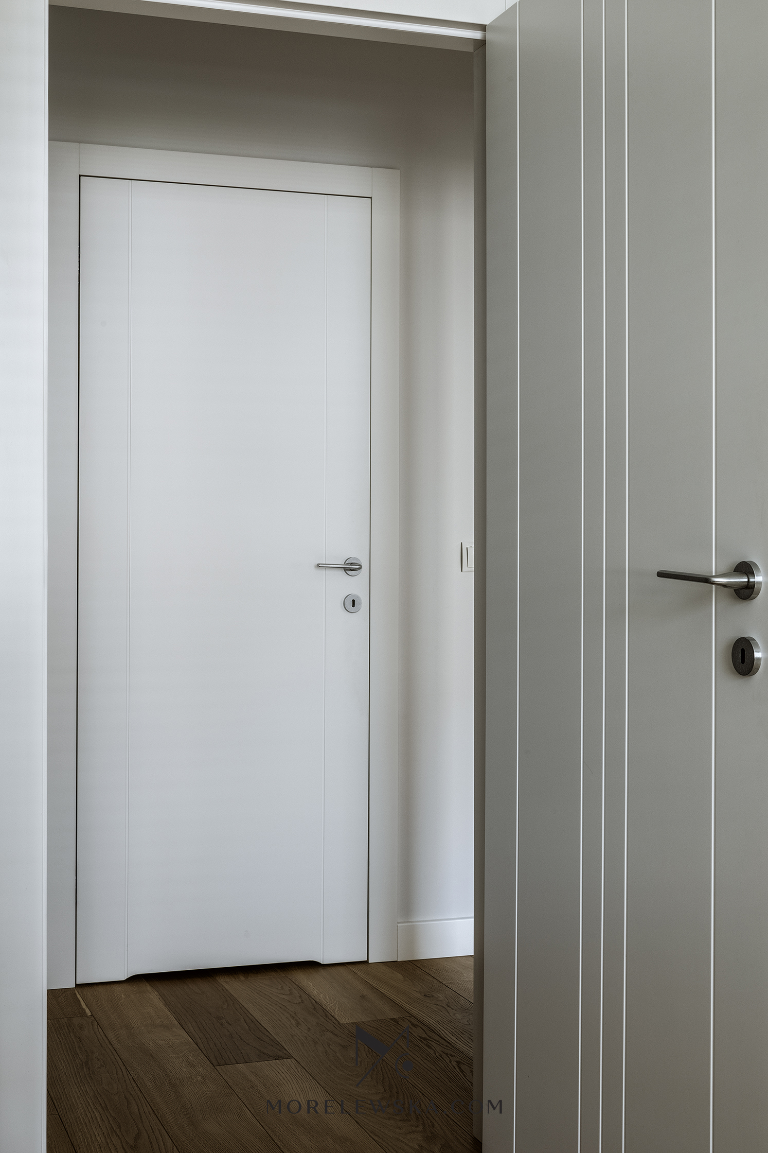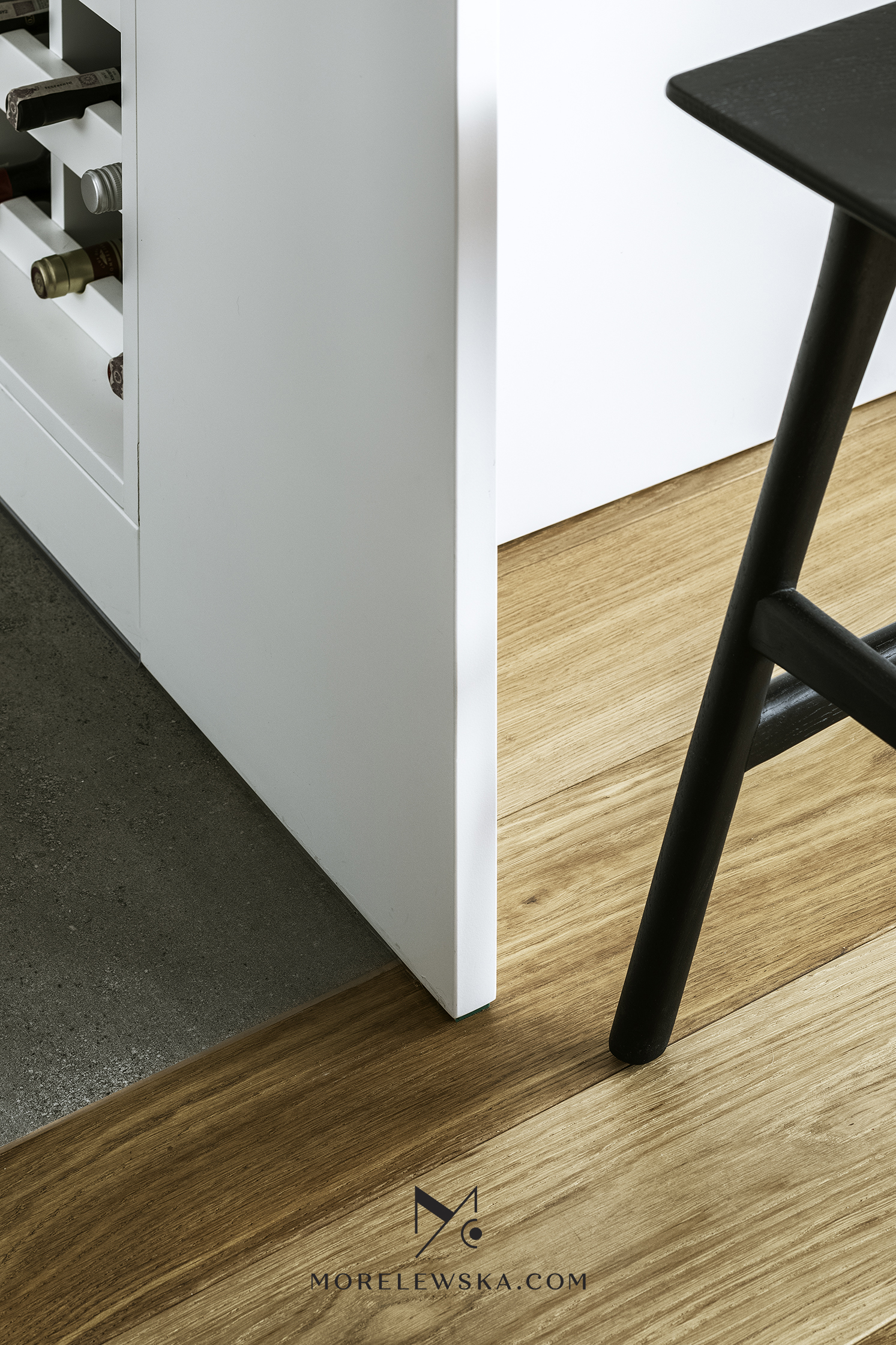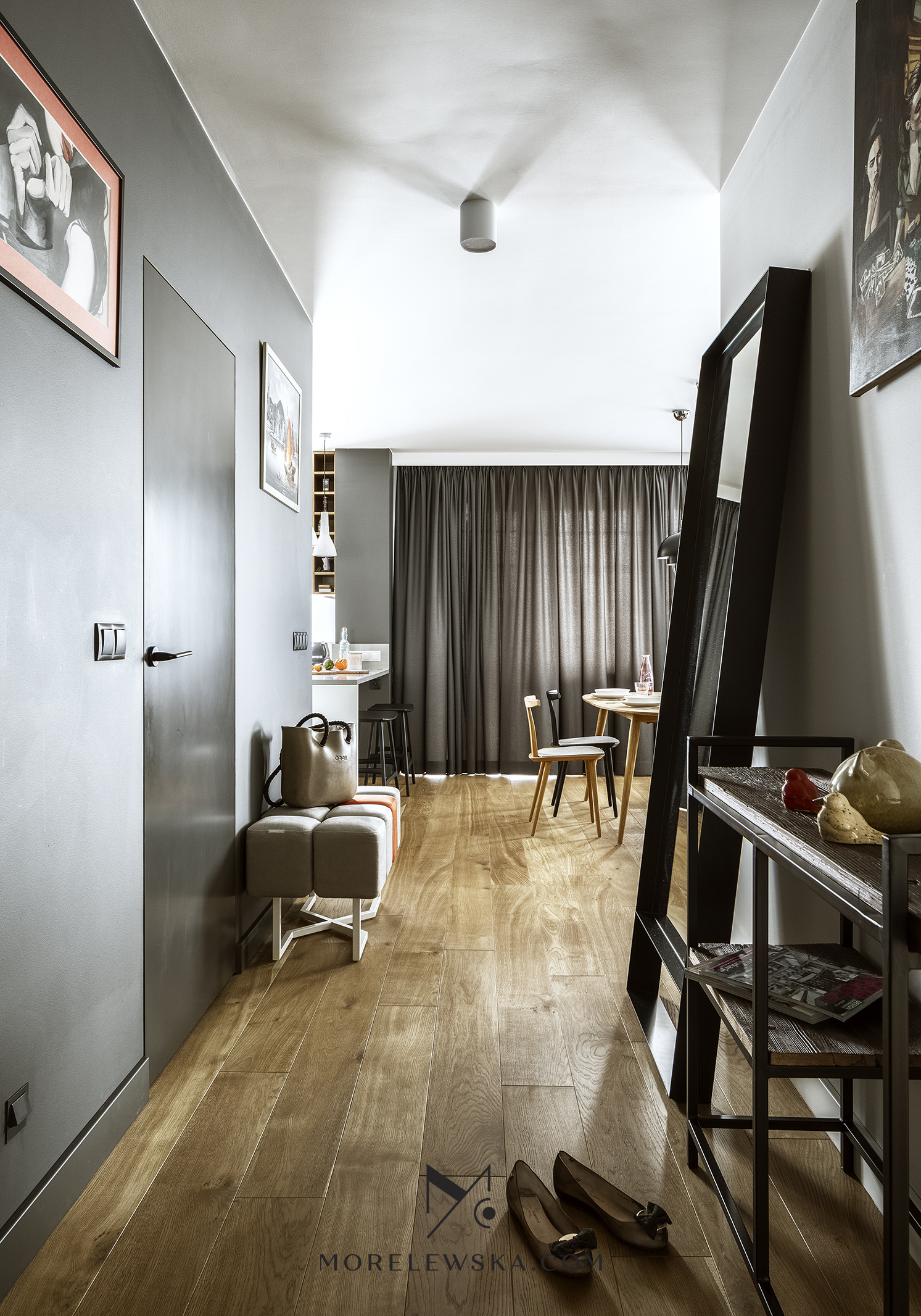 Metamorfoza wnętrza może być potrzebna również wtedy, gdy dorosłe dzieci opuszczają rodzinny dom. Zmiana układu funkcji w mieszkaniu zaowocowała przestronną strefą dzienną w postaci kuchni otwartej na salon. To tutaj „bije serce” tego mieszkania. Kolorystyka wnętrza, utrzymana w delikatnych bielach, subtelnych szarościach i wyrazistym antracycie, została ocieplona naturalnym drewnem, dzięki czemu mieszkanie jest eleganckie